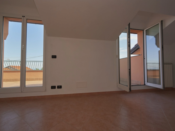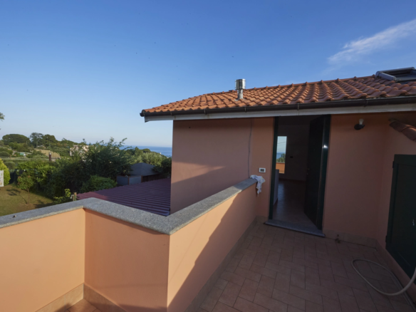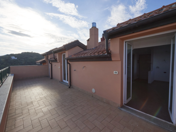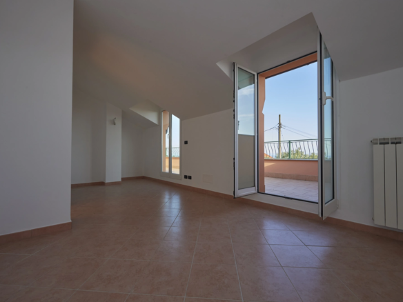 Ai piani di Celle Ligure in posizione leggermente collinare e soleggiatissima panoramica mansarda di mq catastali 71 con porzione di terreno, cosi composta: ingresso indipendente con scaletta esterna privata, soggiorno con angolo cottura, due camere da letto, bagno, ripostiglio, due terrazzi con splendida vista sul golfo, cantina. Completa la proprietà un appezzamento di terreno ad uso giardino che può essere anche adibito a posti auto con metratura di mq. 86. Possibilità di box a parte.